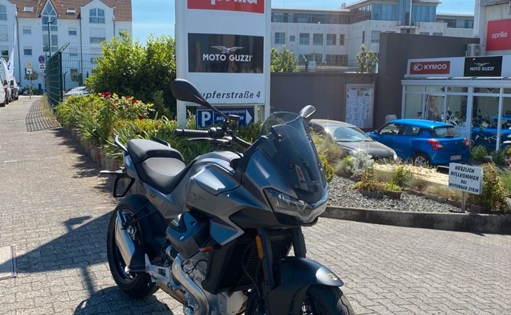 1042cm 90° - V2 Motor, 84,6kW/115PS bei 8.700 U/min, 105Nm bei 6.750 U/min, Abgasnorm Euro 5+, 82% des maximalen Drehmoment ab 3.500 U/min, Wassergekühlt, Kardan, 320mm Brembo Bremsen, 233kg fahrfertig, Tankinhalt ca. 17 Liter - Verbrauch ca. 4,7L/ 100km,
